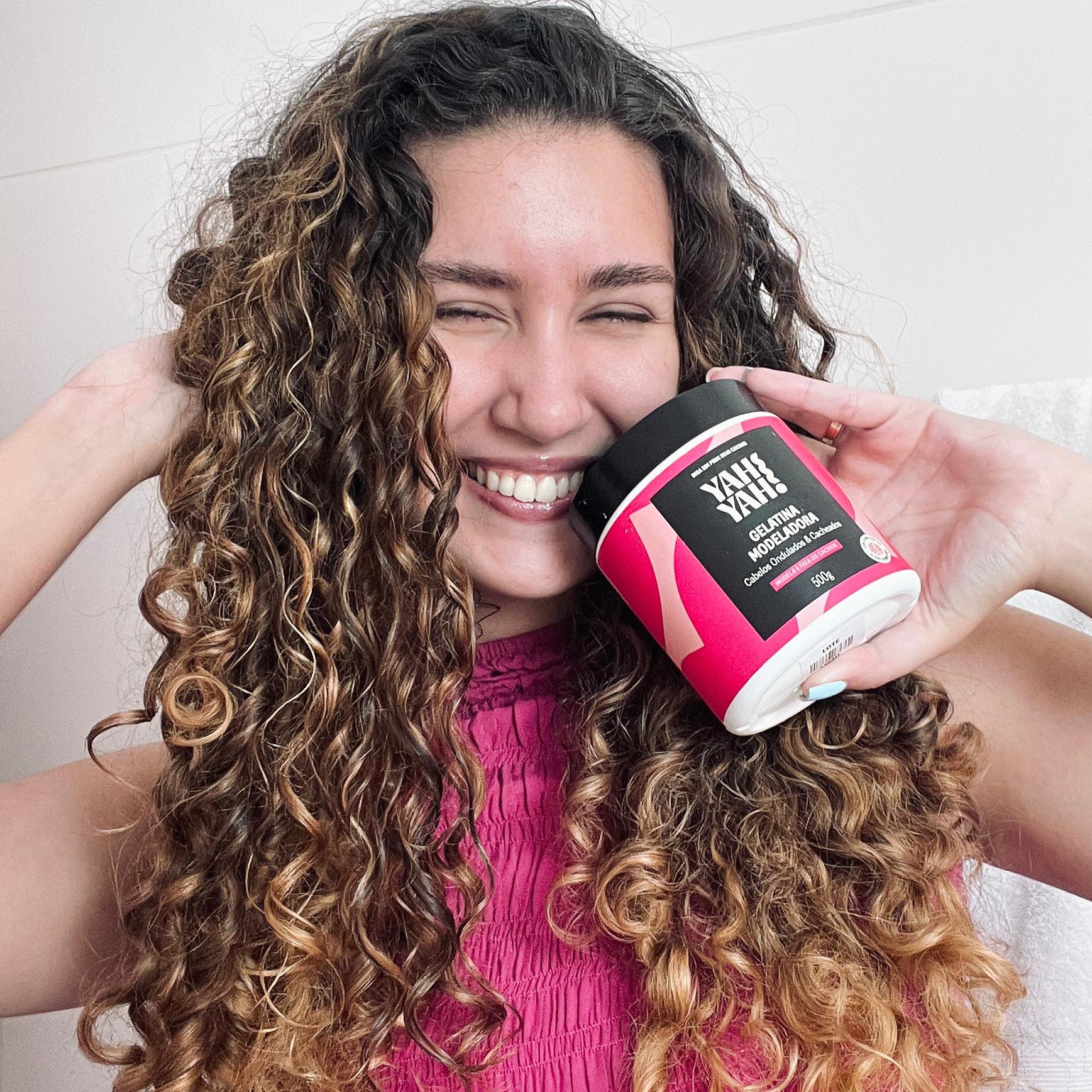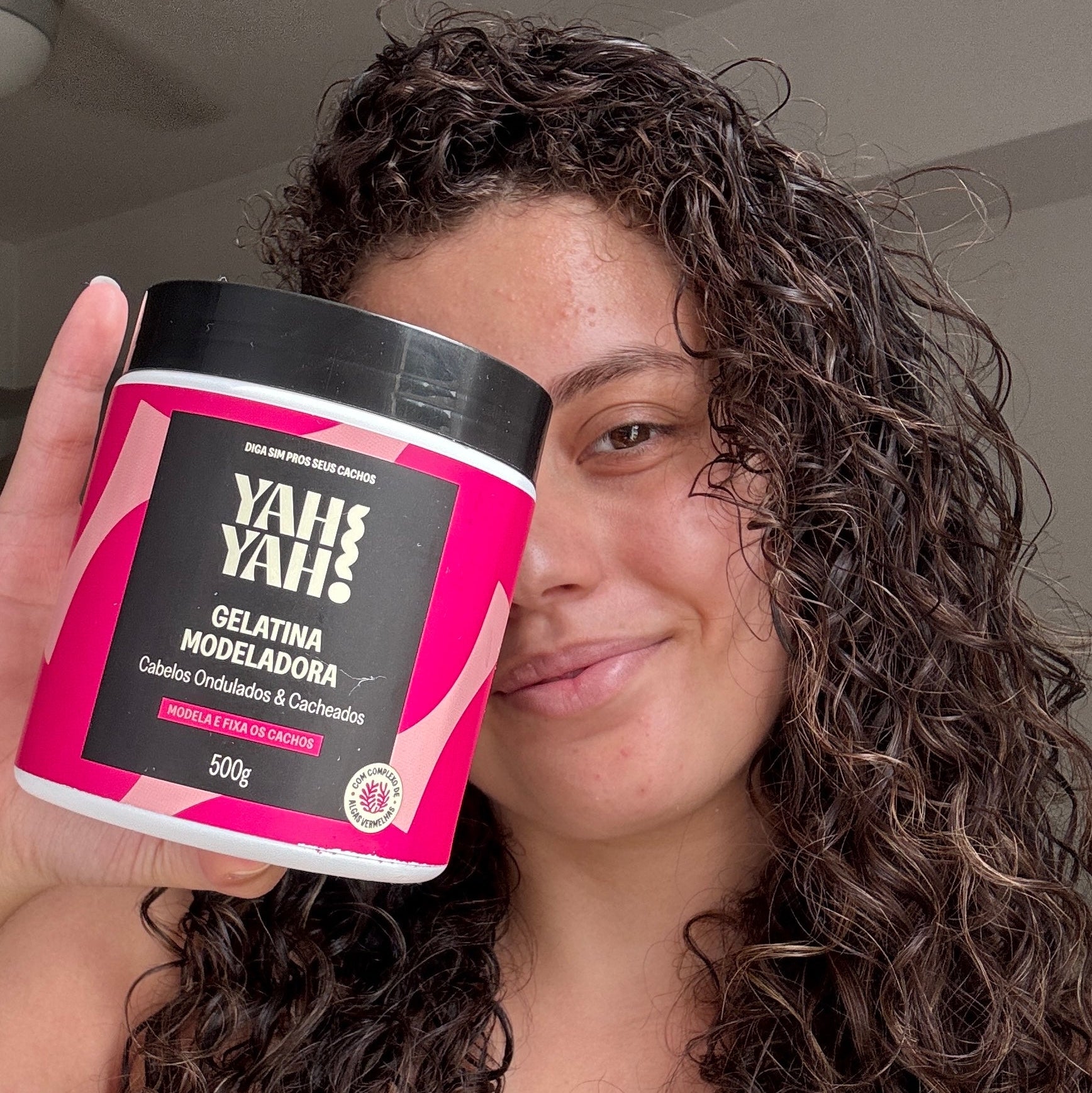 Gelatinas comuns endurecem e tiram o balanço? A textura inteligente da Yah Yah! modela sem pesar e deixa os cachos leves, macios e cheios de vida.