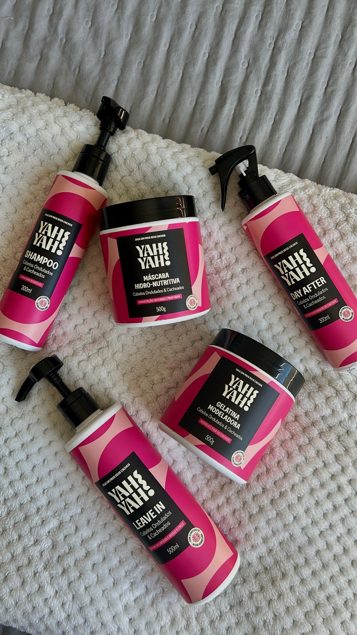 Finalize com o Leave-in ou Gelatina Modeladora Yah Yah! para selar a hidratação e garantir cachos definidos, leves e com brilho intenso.